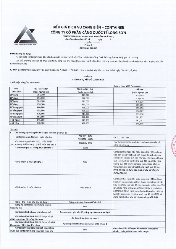 Link tải biểu phí dịch vụ cảng biển